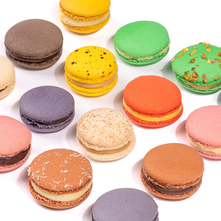 I macarons Sebastiano Caridi sono piccole delizie artigianali composti da gusci di meringa che racchiudono una ganache cremosa.