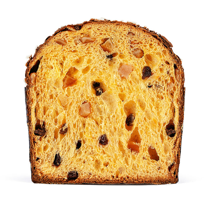 I profumi del genuino burro di latteria sono avvolti dall’aroma della vaniglia Bourbon e dalle note esclusive dell’arancio di Calabria e dell’uvetta.