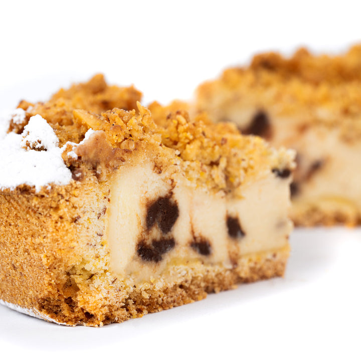La sua frolla senza farina, morbida e profumata alle mandorle, accoglie un ripieno cremoso di ricotta fresca impreziosito da gocce di cioccolato fondente per un equilibrio perfetto tra dolcezza e freschezza.